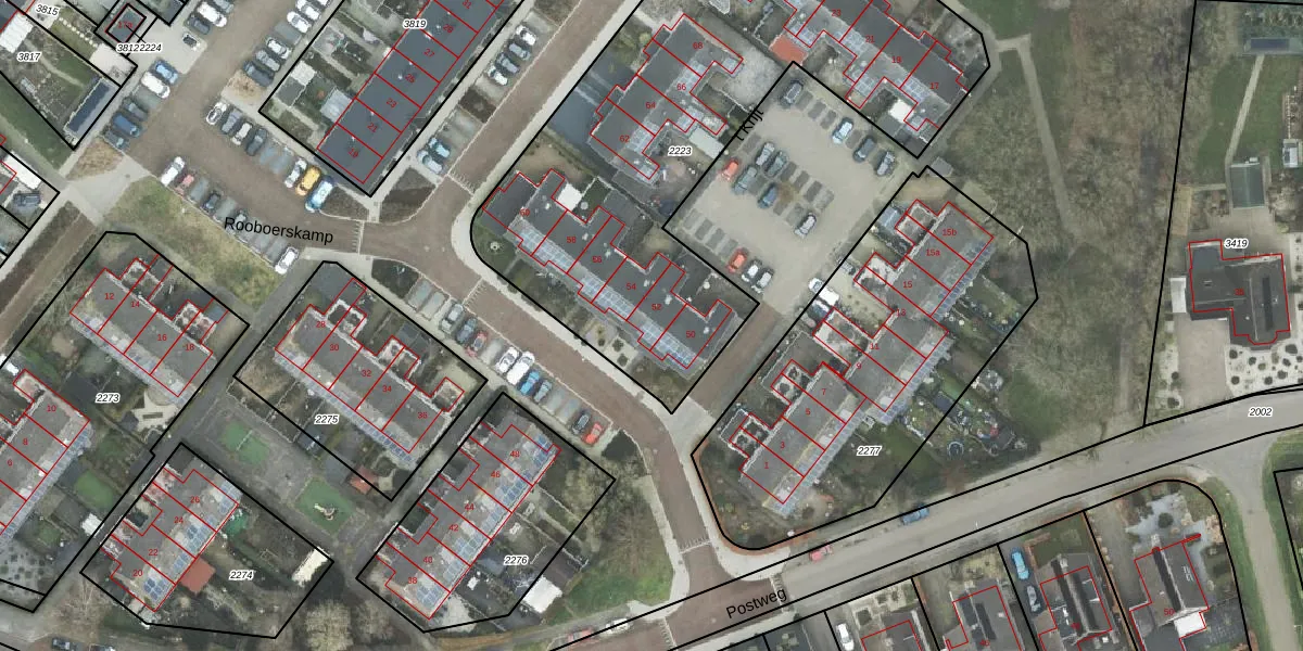 Rooboerskamp 52 is gelegen op kadastraal perceel HDE00B2223. Deze kadastrale aanduiding is uniek en wordt gebruikt door het Kadaster om eigendomsrechten en andere zakelijke rechten vast te leggen. Het perceel maakt onderdeel uit van de kadastrale gemeente Heerde.