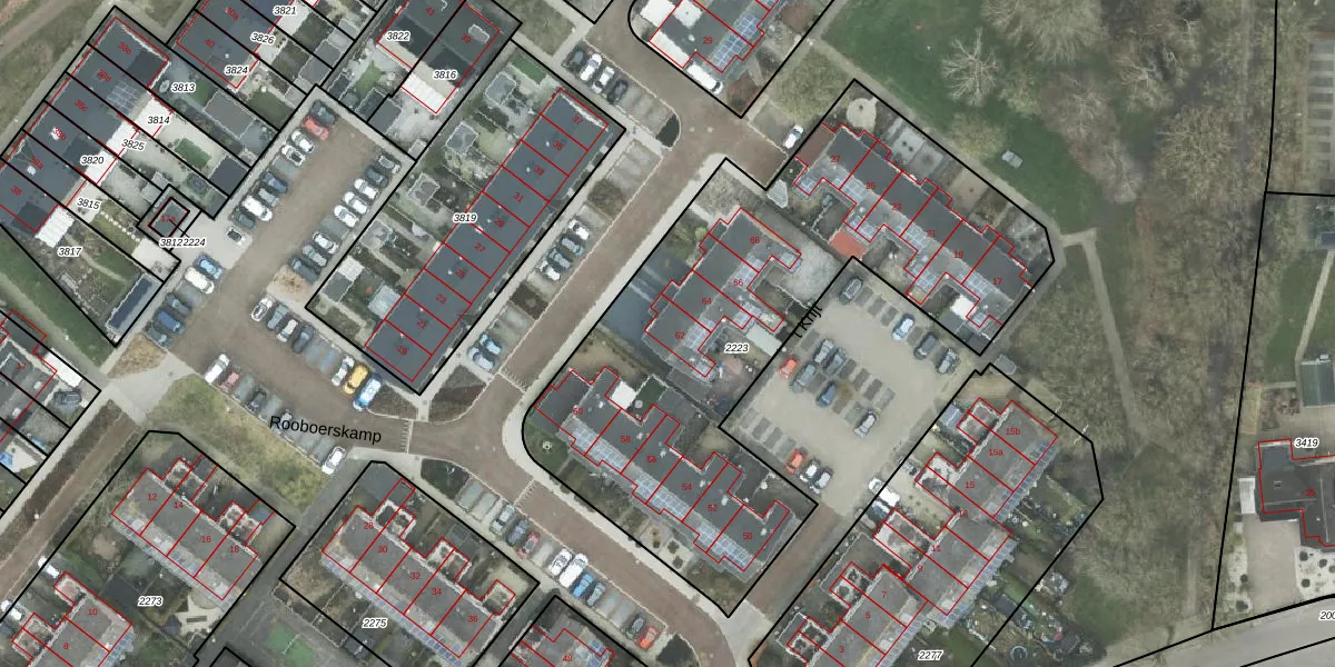 Het perceel waarop Rooboerskamp 62 staat heeft een oppervlakte van 2510 m². Dit is een zeer groot perceel. De perceeloppervlakte wordt geregistreerd door het Kadaster. Gedetailleerde informatie over de maten van dit perceel kunt u vinden in het rapport Kadastrale kaart met maatvoering van Rooboerskamp 62.