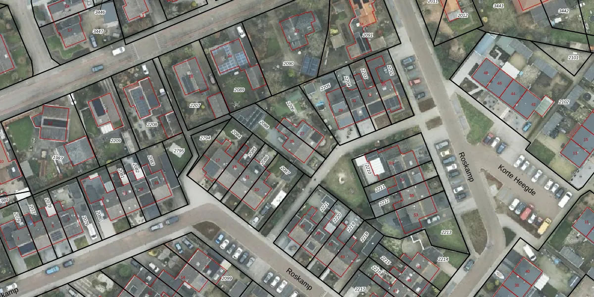 Roskamp 25 is gelegen op kadastraal perceel HDE00B2088. Deze kadastrale aanduiding is uniek en wordt gebruikt door het Kadaster om eigendomsrechten en andere zakelijke rechten vast te leggen. Het perceel maakt onderdeel uit van de kadastrale gemeente Heerde.