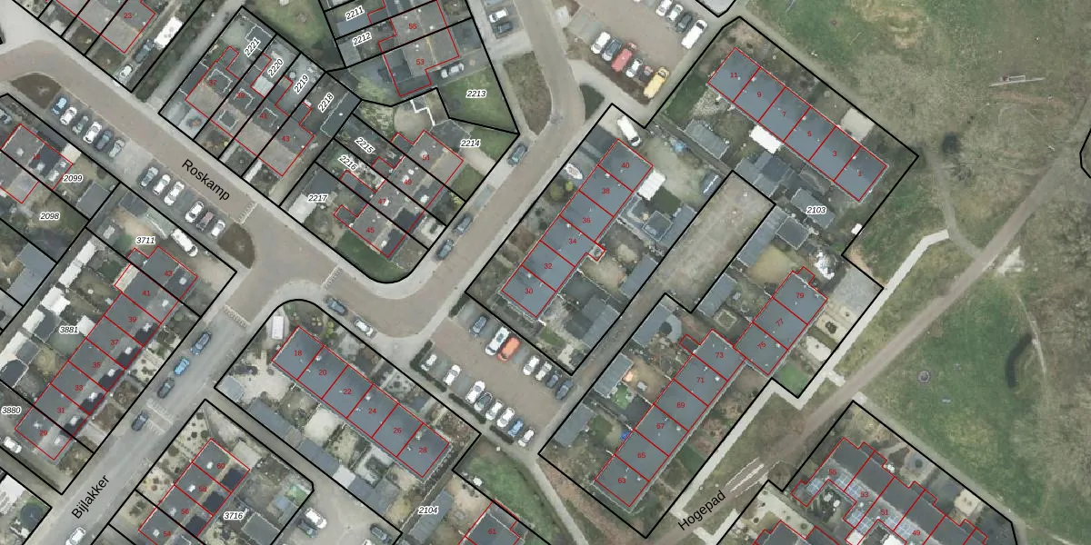 Roskamp 32 is gelegen op kadastraal perceel HDE00B2103. Deze kadastrale aanduiding is uniek en wordt gebruikt door het Kadaster om eigendomsrechten en andere zakelijke rechten vast te leggen. Het perceel maakt onderdeel uit van de kadastrale gemeente Heerde.