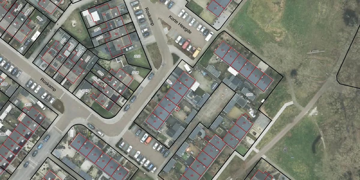 Roskamp 38 is gelegen op kadastraal perceel HDE00B2103. Deze kadastrale aanduiding is uniek en wordt gebruikt door het Kadaster om eigendomsrechten en andere zakelijke rechten vast te leggen. Het perceel maakt onderdeel uit van de kadastrale gemeente Heerde.