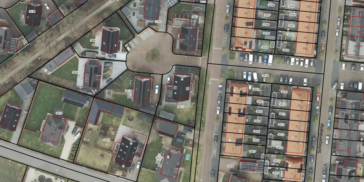 Het perceel waarop Ten Veldhuize 1 staat heeft een oppervlakte van 627 m². Dit is een groot perceel. De perceeloppervlakte wordt geregistreerd door het Kadaster. Gedetailleerde informatie over de maten van dit perceel kunt u vinden in het rapport Kadastrale kaart met maatvoering van Ten Veldhuize 1.