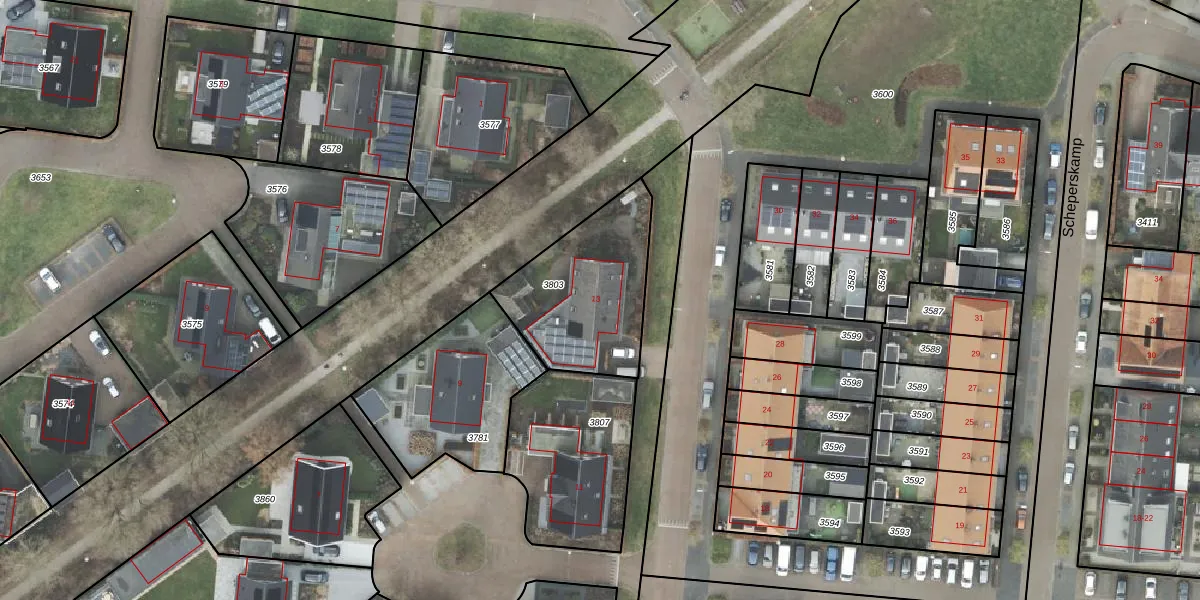 Het perceel waarop Ten Veldhuize 13 staat heeft een oppervlakte van 540 m². Dit is een groot perceel. De perceeloppervlakte wordt geregistreerd door het Kadaster. Gedetailleerde informatie over de maten van dit perceel kunt u vinden in het rapport Kadastrale kaart met maatvoering van Ten Veldhuize 13.