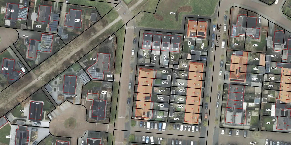 Het adres ligt op het perceel HDE00-H-3599, dat zich in de kadastrale gemeente Heerde bevindt. De gemiddelde perceelgrootte in Heerde is 6319,64 m². Dit perceel is kleiner: de perceeloppervlakte bedraagt 198 m². Het grootste perceel in de kadastrale gemeente is 1,56 km². Het kleinste perceel heeft een oppervlakte van 1 m². Op het perceel bevinden zich geen andere adressen. De huidige grenzen van het perceel zijn digitaal in de Basisregistratie Kadaster (BRK) geregistreerd op 28-06-2013.
