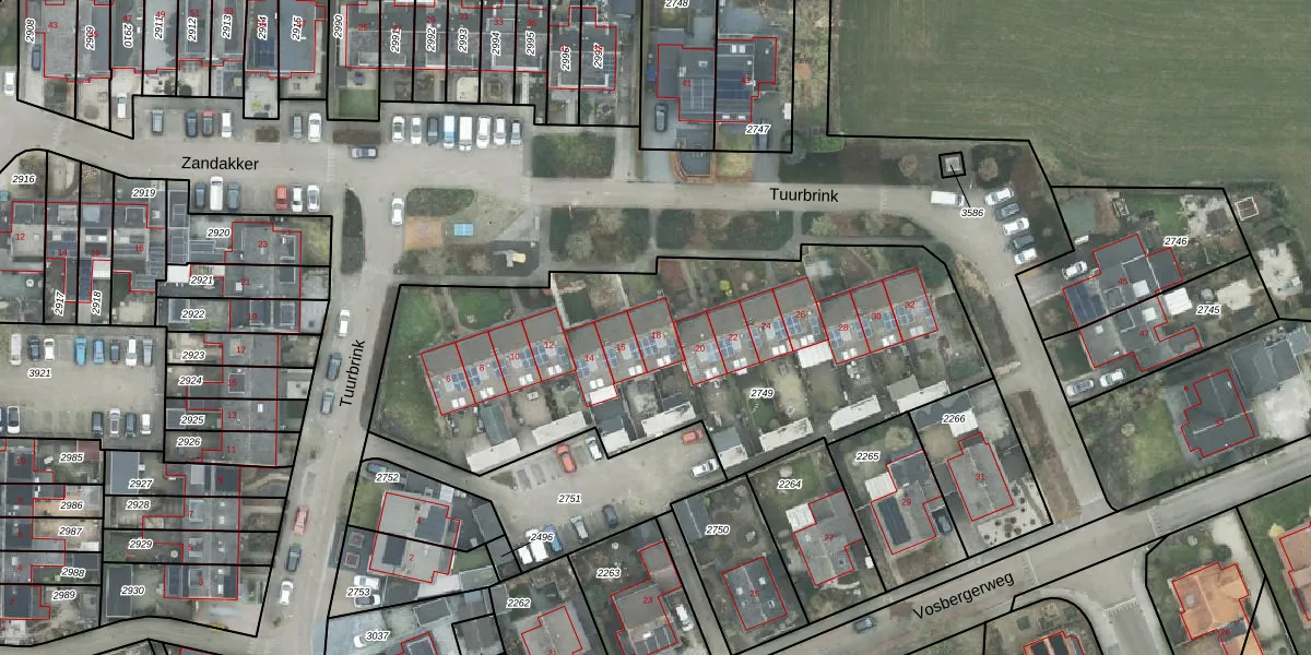 Het perceel waarop Tuurbrink 18 staat heeft een oppervlakte van 2420 m². Dit is een zeer groot perceel. De perceeloppervlakte wordt geregistreerd door het Kadaster. Gedetailleerde informatie over de maten van dit perceel kunt u vinden in het rapport Kadastrale kaart met maatvoering van Tuurbrink 18.