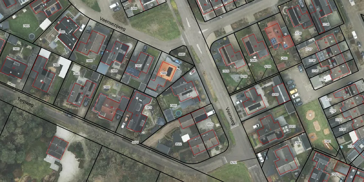 Gebruik de zoekbalk of klik op een perceel voor informatie over de adressen binnen dit perceel.