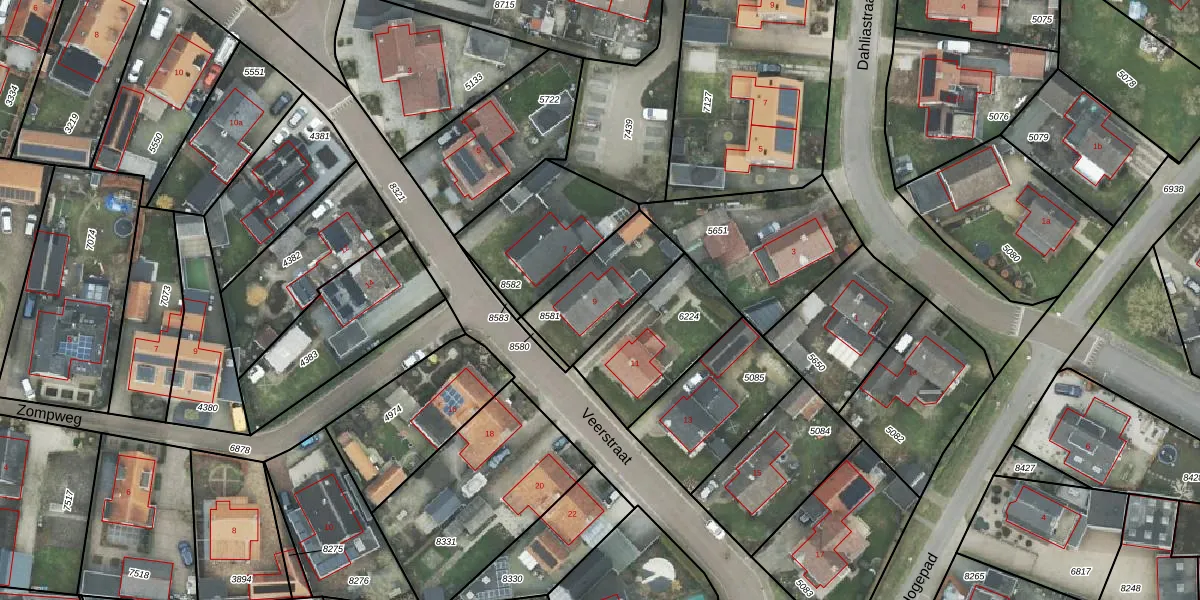 Het perceel waarop Veerstraat 9 staat heeft een oppervlakte van 293 m². Dit is een middelgroot perceel. De perceeloppervlakte wordt geregistreerd door het Kadaster. Gedetailleerde informatie over de maten van dit perceel kunt u vinden in het rapport Kadastrale kaart met maatvoering van Veerstraat 9.