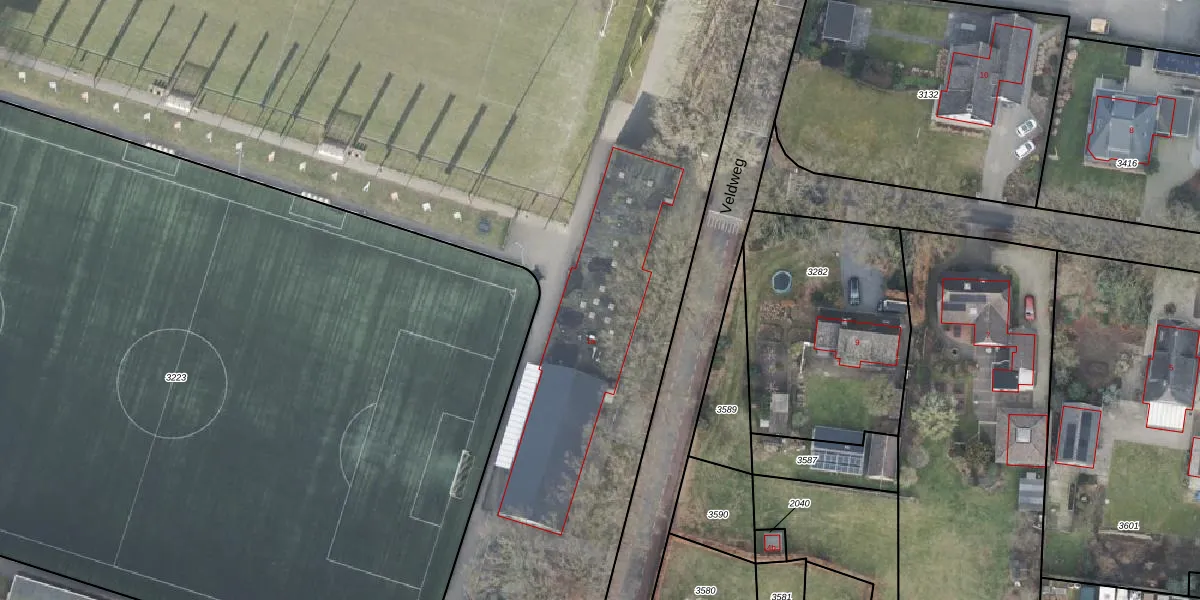 Het perceel waarop Veldweg 1-a staat heeft een oppervlakte van 4,4 ha. Dit is een zeer groot perceel. De perceeloppervlakte wordt geregistreerd door het Kadaster. Gedetailleerde informatie over de maten van dit perceel kunt u vinden in het rapport Kadastrale kaart met maatvoering van Veldweg 1-a.