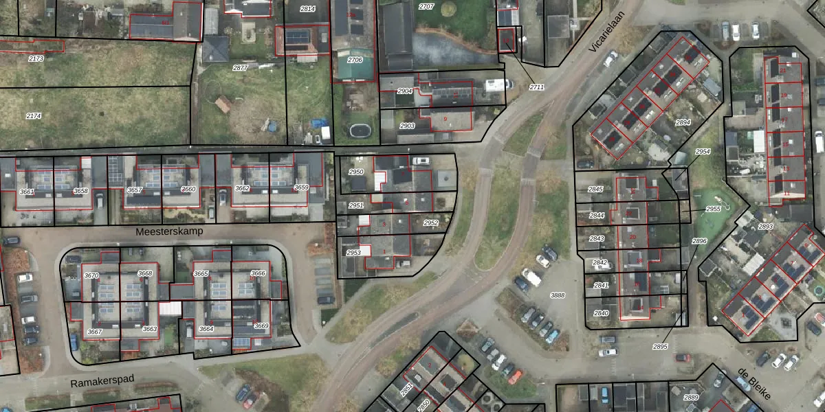 Vicarielaan 5 is gelegen op kadastraal perceel HDE00B2951. Deze kadastrale aanduiding is uniek en wordt gebruikt door het Kadaster om eigendomsrechten en andere zakelijke rechten vast te leggen. Het perceel maakt onderdeel uit van de kadastrale gemeente Heerde.