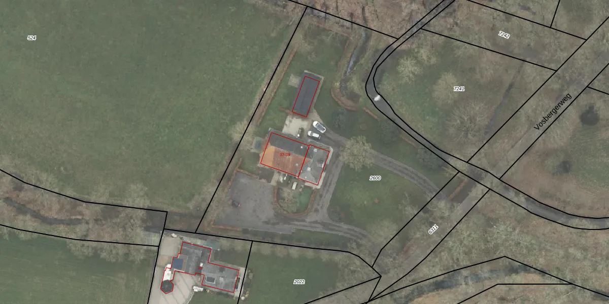 Het perceel waarop Vosbergerweg 39 staat heeft een oppervlakte van 4154 m². Dit is een zeer groot perceel. De perceeloppervlakte wordt geregistreerd door het Kadaster. Gedetailleerde informatie over de maten van dit perceel kunt u vinden in het rapport Kadastrale kaart met maatvoering van Vosbergerweg 39.