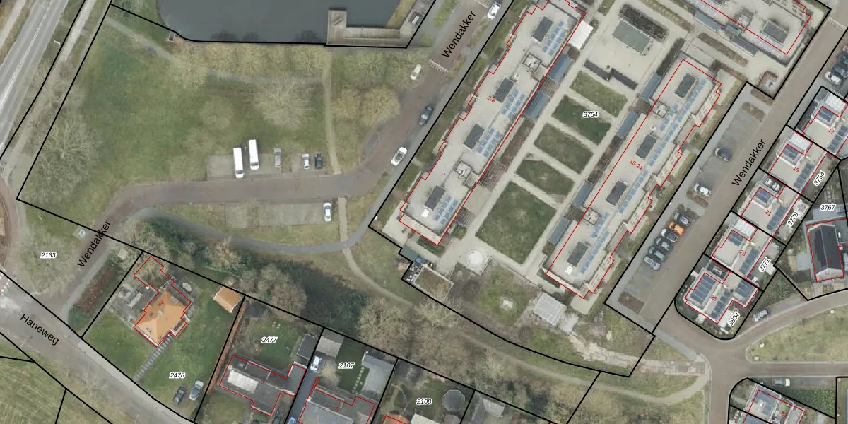 Het perceel waarop Wendakker 2 staat heeft een oppervlakte van 6440 m². Dit is een zeer groot perceel. De perceeloppervlakte wordt geregistreerd door het Kadaster. Gedetailleerde informatie over de maten van dit perceel kunt u vinden in het rapport Kadastrale kaart met maatvoering van Wendakker 2.