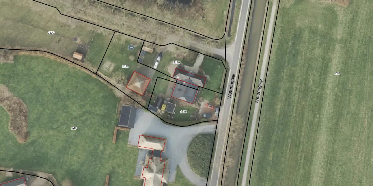 Weteringdijk 2 is gelegen op kadastraal perceel HDE00P1418. Deze kadastrale aanduiding is uniek en wordt gebruikt door het Kadaster om eigendomsrechten en andere zakelijke rechten vast te leggen. Het perceel maakt onderdeel uit van de kadastrale gemeente Heerde.
