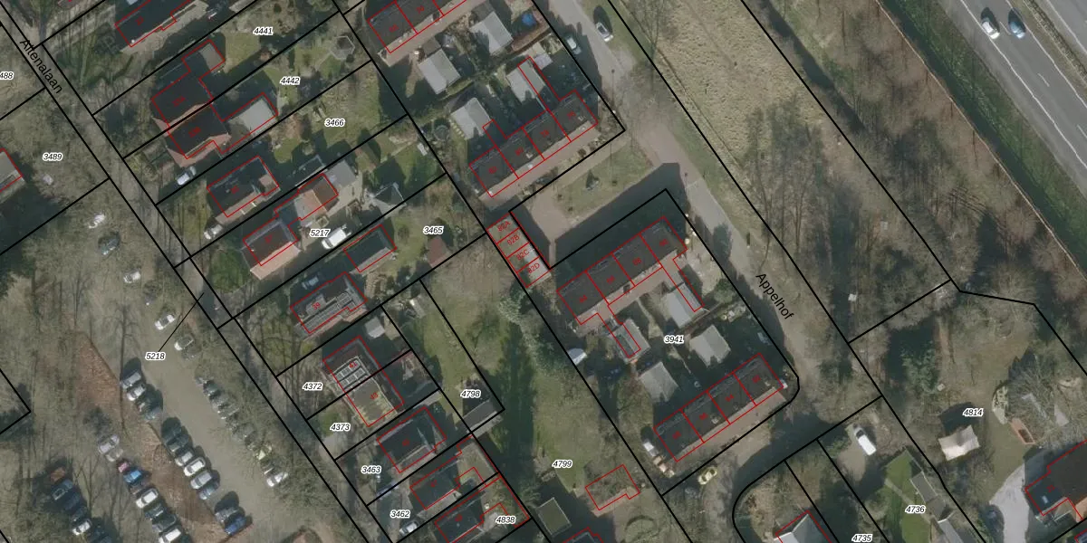 Het perceel waarop Appelhof 82-D staat heeft een oppervlakte van 3000 m². Dit is een zeer groot perceel. De perceeloppervlakte wordt geregistreerd door het Kadaster. Gedetailleerde informatie over de maten van dit perceel kunt u vinden in het rapport Kadastrale kaart met maatvoering van Appelhof 82-D.