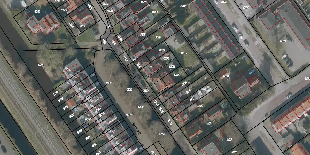 Het perceel waarop Badweg 71 staat heeft een oppervlakte van 53 m². Dit is een klein perceel. De perceeloppervlakte wordt geregistreerd door het Kadaster. Gedetailleerde informatie over de maten van dit perceel kunt u vinden in het rapport Kadastrale kaart met maatvoering van Badweg 71.