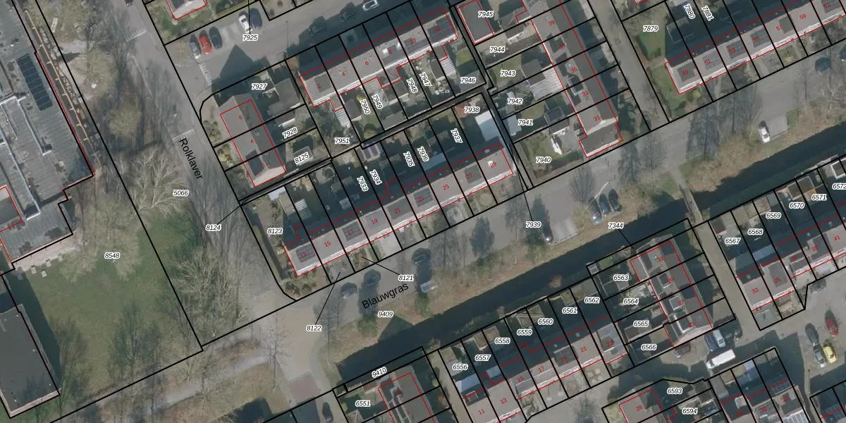 Blauwgras 23 is gelegen op kadastraal perceel HRV01A7935. Deze kadastrale aanduiding is uniek en wordt gebruikt door het Kadaster om eigendomsrechten en andere zakelijke rechten vast te leggen. Het perceel maakt onderdeel uit van de kadastrale gemeente Heerenveen.