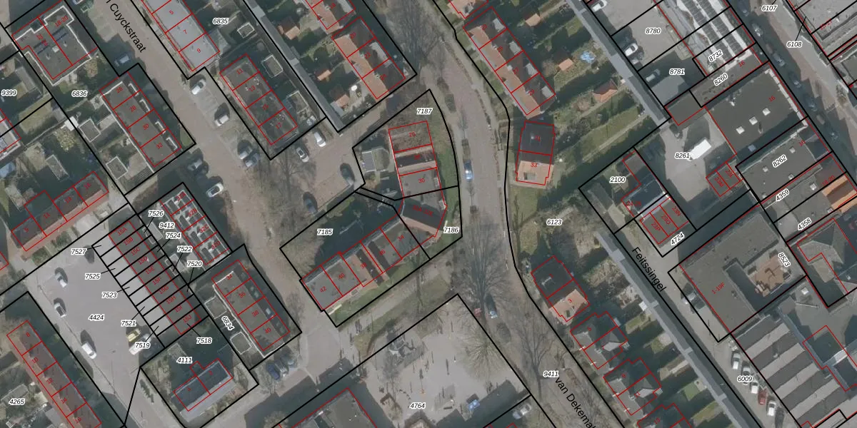Het perceel waarop Compagnonsstraat 32-C staat heeft een oppervlakte van 187 m². Dit is een middelgroot perceel. De perceeloppervlakte wordt geregistreerd door het Kadaster. Gedetailleerde informatie over de maten van dit perceel kunt u vinden in het rapport Kadastrale kaart met maatvoering van Compagnonsstraat 32-C.