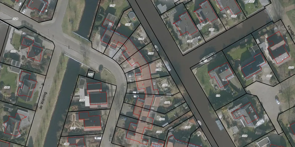 Het perceel waarop de Kimen 9 staat heeft een oppervlakte van 280 m². Dit is een middelgroot perceel. De perceeloppervlakte wordt geregistreerd door het Kadaster. Gedetailleerde informatie over de maten van dit perceel kunt u vinden in het rapport Kadastrale kaart met maatvoering van de Kimen 9.