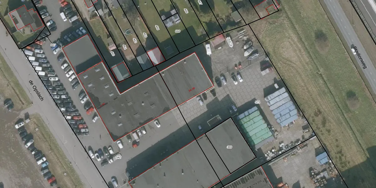 Het perceel waarop de Opslach 3-A staat heeft een oppervlakte van 3623 m². Dit is een zeer groot perceel. De perceeloppervlakte wordt geregistreerd door het Kadaster. Gedetailleerde informatie over de maten van dit perceel kunt u vinden in het rapport Kadastrale kaart met maatvoering van de Opslach 3-A.