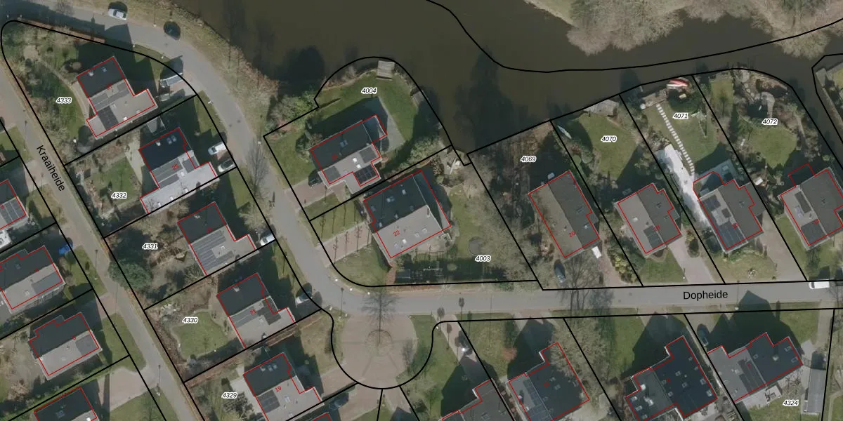 Dopheide 22 is gelegen op kadastraal perceel KPE00C4003. Deze kadastrale aanduiding is uniek en wordt gebruikt door het Kadaster om eigendomsrechten en andere zakelijke rechten vast te leggen. Het perceel maakt onderdeel uit van de kadastrale gemeente Knijpe.