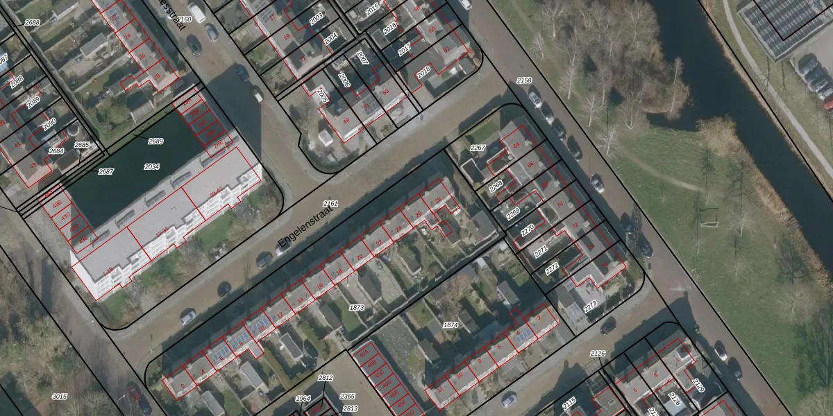 Het perceel waarop Engelenstraat 26 staat heeft een oppervlakte van 2325 m². Dit is een zeer groot perceel. De perceeloppervlakte wordt geregistreerd door het Kadaster. Gedetailleerde informatie over de maten van dit perceel kunt u vinden in het rapport Kadastrale kaart met maatvoering van Engelenstraat 26.