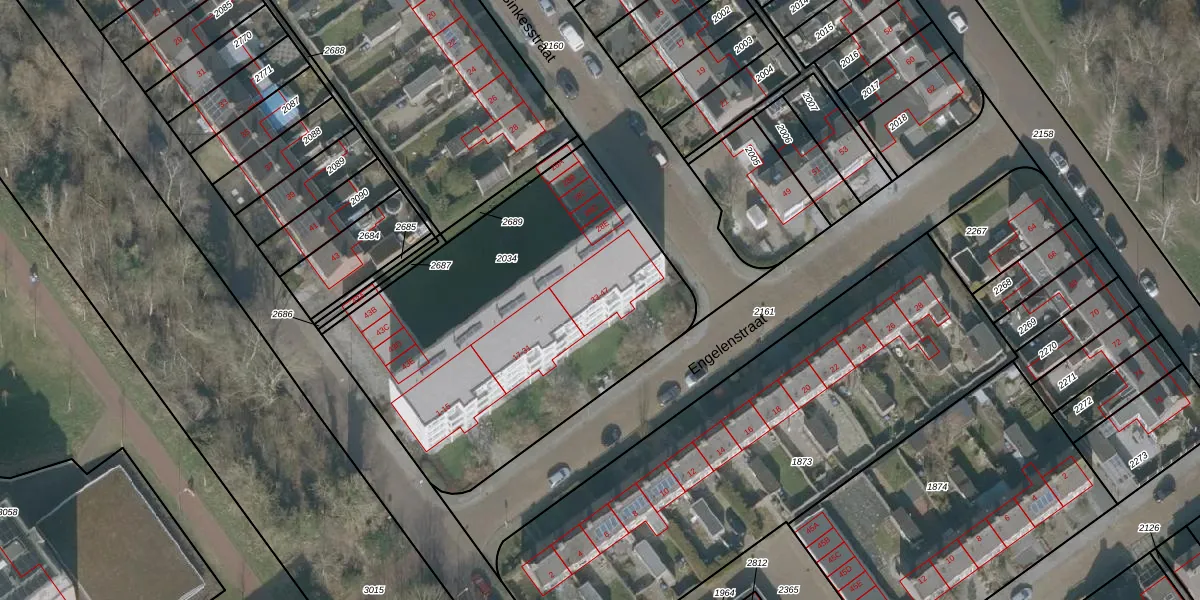 Het perceel waarop Engelenstraat 37 staat heeft een oppervlakte van 1914 m². Dit is een zeer groot perceel. De perceeloppervlakte wordt geregistreerd door het Kadaster. Gedetailleerde informatie over de maten van dit perceel kunt u vinden in het rapport Kadastrale kaart met maatvoering van Engelenstraat 37.