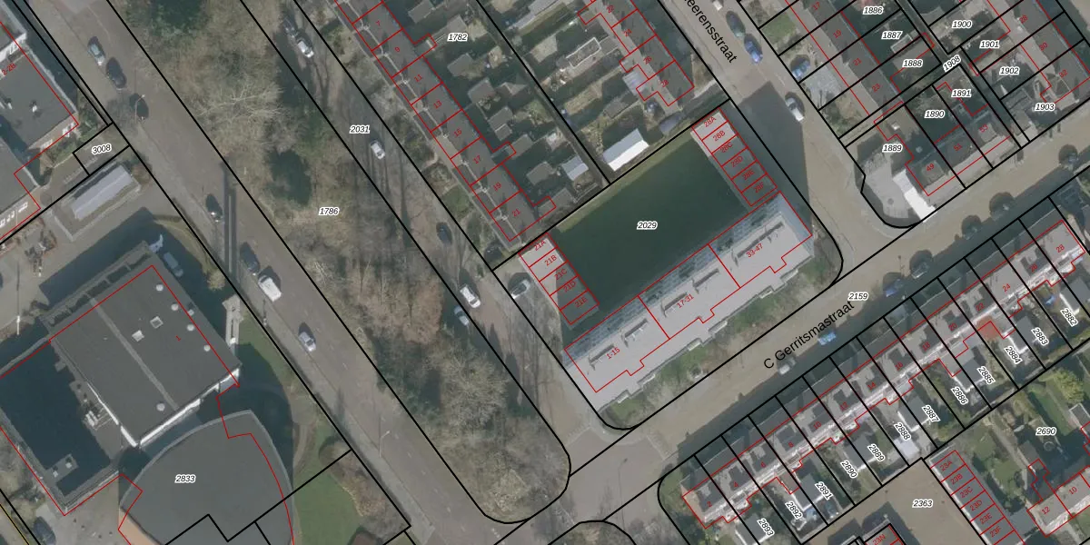 Het adres ligt op het perceel HRV01-B-2029, dat zich in de kadastrale gemeente Heerenveen bevindt. Het perceel is met 2075 m² relatief groot. Het gemiddelde ligt in de kadastrale gemeente Heerenveen op 584,05 m². Het grootste perceel in de kadastrale gemeente is 16,8 ha. Het kleinste perceel heeft een oppervlakte van 0 m². Op het perceel liggen in totaal 35 adressen. In de Basisregistratie Kadaster (BRK) werden de grenzen van het perceel geregistreerd op 15-01-1998.