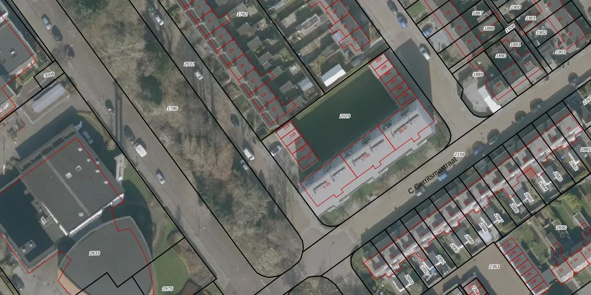 Het adres ligt op het perceel HRV01-B-2029, dat zich in de kadastrale gemeente Heerenveen bevindt. Het perceel is met 2075 m² relatief groot. Het gemiddelde ligt in de kadastrale gemeente Heerenveen op 584,05 m². Het grootste perceel in de kadastrale gemeente is 16,8 ha. Het kleinste perceel heeft een oppervlakte van 0 m². Op het perceel liggen in totaal 35 adressen. De laatste wijziging in het de Basisregistratie Kadaster (BRK) was op 15-01-1998.
