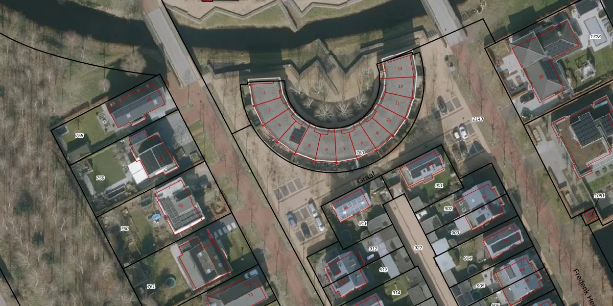 Het perceel waarop Graaf 5 staat heeft een oppervlakte van 1143 m². Dit is een zeer groot perceel. De perceeloppervlakte wordt geregistreerd door het Kadaster. Gedetailleerde informatie over de maten van dit perceel kunt u vinden in het rapport Kadastrale kaart met maatvoering van Graaf 5.