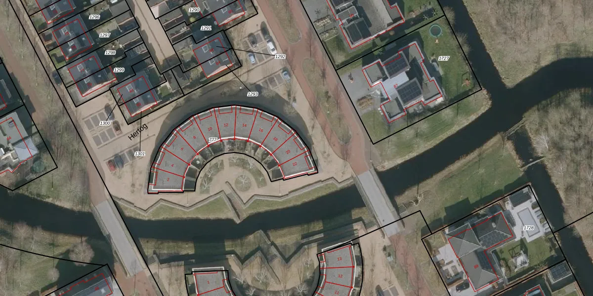 Het perceel waarop Hertog 20 staat heeft een oppervlakte van 981 m². Dit is een groot perceel. De perceeloppervlakte wordt geregistreerd door het Kadaster. Gedetailleerde informatie over de maten van dit perceel kunt u vinden in het rapport Kadastrale kaart met maatvoering van Hertog 20.