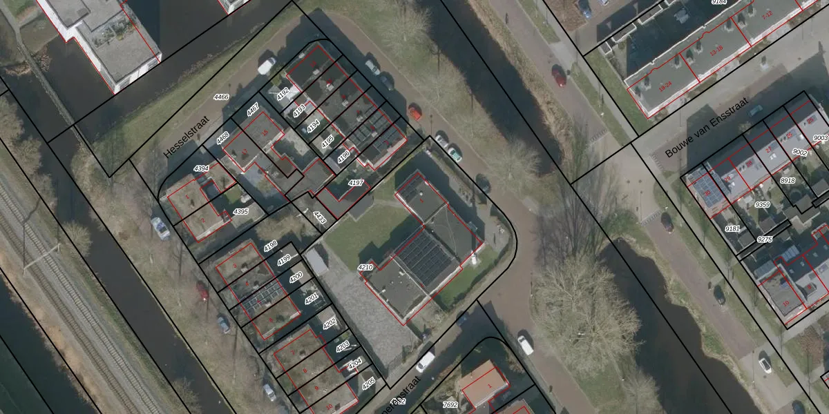 Hesselstraat 1 is gelegen op kadastraal perceel HRV01A4210. Deze kadastrale aanduiding is uniek en wordt gebruikt door het Kadaster om eigendomsrechten en andere zakelijke rechten vast te leggen. Het perceel maakt onderdeel uit van de kadastrale gemeente Heerenveen.