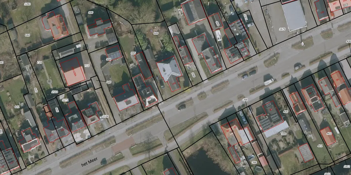 Het perceel waarop het Meer 143 staat heeft een oppervlakte van 808 m². Dit is een groot perceel. De perceeloppervlakte wordt geregistreerd door het Kadaster. Gedetailleerde informatie over de maten van dit perceel kunt u vinden in het rapport Kadastrale kaart met maatvoering van het Meer 143.