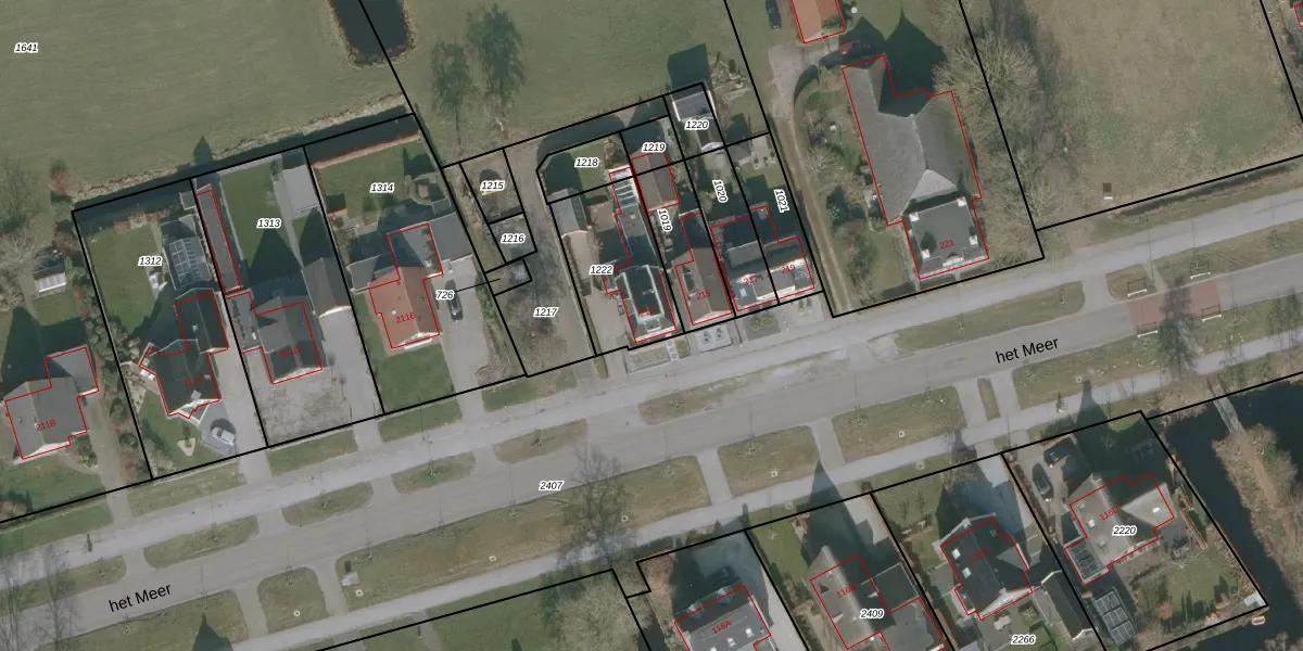 Het perceel waarop het Meer 213 staat heeft een oppervlakte van 343 m². Dit is een groot perceel. De perceeloppervlakte wordt geregistreerd door het Kadaster. Gedetailleerde informatie over de maten van dit perceel kunt u vinden in het rapport Kadastrale kaart met maatvoering van het Meer 213.