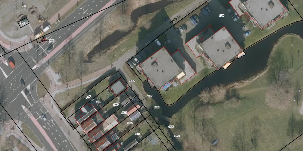 Het perceel waarop Hoflaan 2 staat heeft een oppervlakte van 4630 m². Dit is een zeer groot perceel. De perceeloppervlakte wordt geregistreerd door het Kadaster. Gedetailleerde informatie over de maten van dit perceel kunt u vinden in het rapport Kadastrale kaart met maatvoering van Hoflaan 2.
