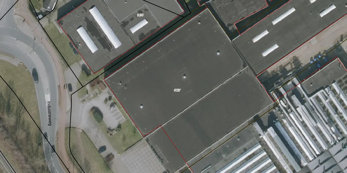Het perceel waarop Industrieweg 2 staat heeft een oppervlakte van 1,1 ha. Dit is een zeer groot perceel. De perceeloppervlakte wordt geregistreerd door het Kadaster. Gedetailleerde informatie over de maten van dit perceel kunt u vinden in het rapport Kadastrale kaart met maatvoering van Industrieweg 2.