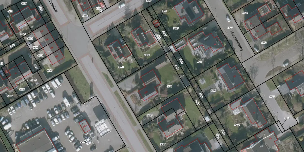 Het perceel waarop Kattebos 105 staat heeft een oppervlakte van 999 m². Dit is een groot perceel. De perceeloppervlakte wordt geregistreerd door het Kadaster. Gedetailleerde informatie over de maten van dit perceel kunt u vinden in het rapport Kadastrale kaart met maatvoering van Kattebos 105.