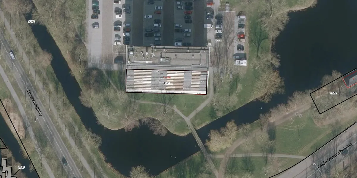Het adres ligt op het perceel HRV01-A-4665, dat zich in de kadastrale gemeente Heerenveen bevindt. De oppervlakte van het perceel is 588 m². Dat is groter dan gemiddeld in Heerenveen, waar de gemiddelde perceeloppervlakte op 583,69 m² ligt. De grootste perceeloppervlakte in de kadastrale gemeente is 16,8 ha. De kleinste oppervlakte bedraagt 0 m². Er zijn 73 adressen aanwezig op het perceel. De huidige grenzen van het perceel zijn digitaal in de Basisregistratie Kadaster (BRK) geregistreerd op 09-02-2009.