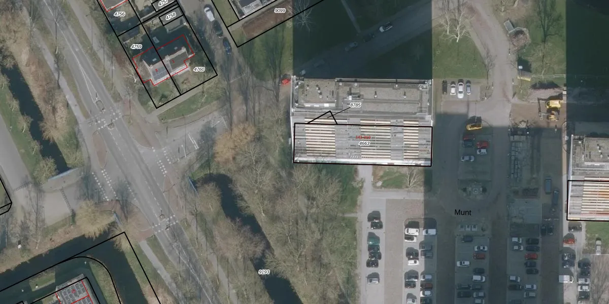Het perceel waarop Munt 177 staat heeft een oppervlakte van 588 m². Dit is een groot perceel. De perceeloppervlakte wordt geregistreerd door het Kadaster. Gedetailleerde informatie over de maten van dit perceel kunt u vinden in het rapport Kadastrale kaart met maatvoering van Munt 177.