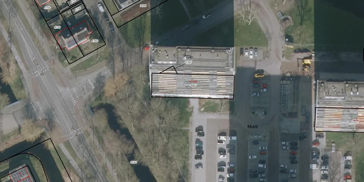 Het perceel waarop Munt 188 staat heeft een oppervlakte van 588 m². Dit is een groot perceel. De perceeloppervlakte wordt geregistreerd door het Kadaster. Gedetailleerde informatie over de maten van dit perceel kunt u vinden in het rapport Kadastrale kaart met maatvoering van Munt 188.