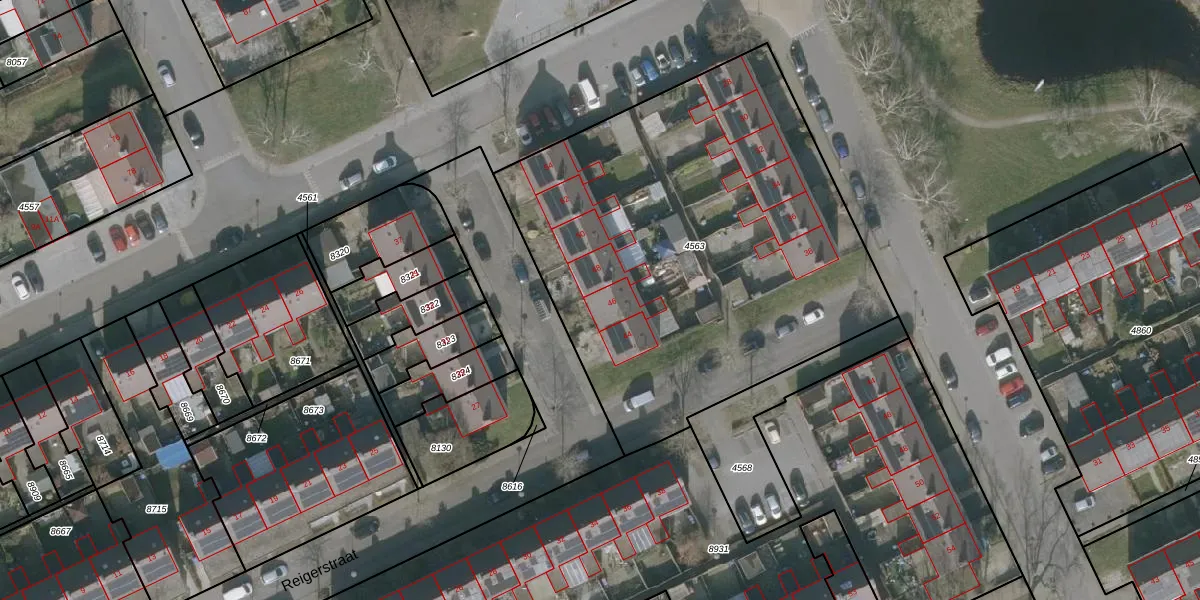 Het perceel waarop Reigerstraat 46 staat heeft een oppervlakte van 2594 m². Dit is een zeer groot perceel. De perceeloppervlakte wordt geregistreerd door het Kadaster. Gedetailleerde informatie over de maten van dit perceel kunt u vinden in het rapport Kadastrale kaart met maatvoering van Reigerstraat 46.