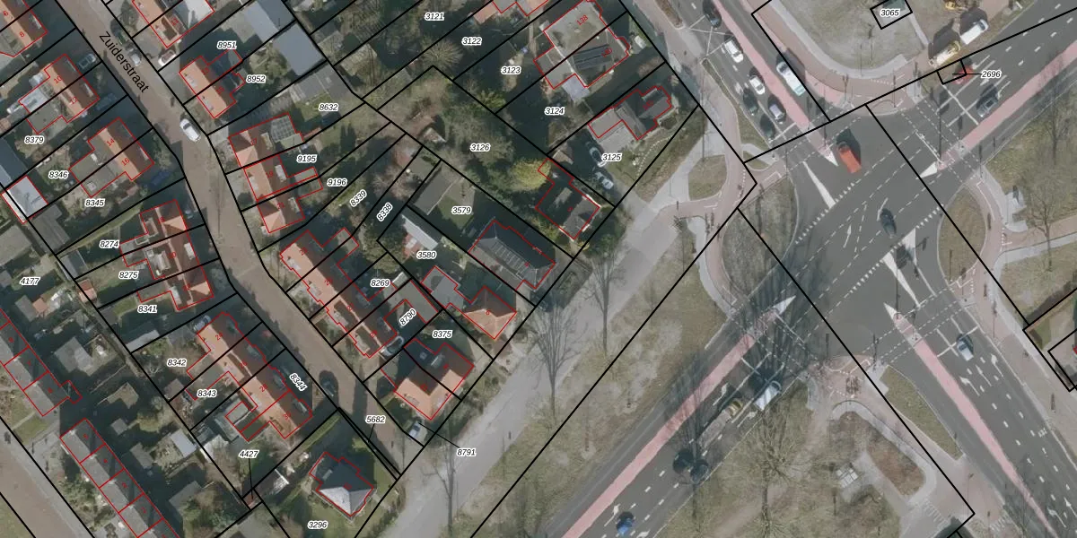 Gebruik de zoekbalk of klik op een perceel voor informatie over de adressen binnen dit perceel.