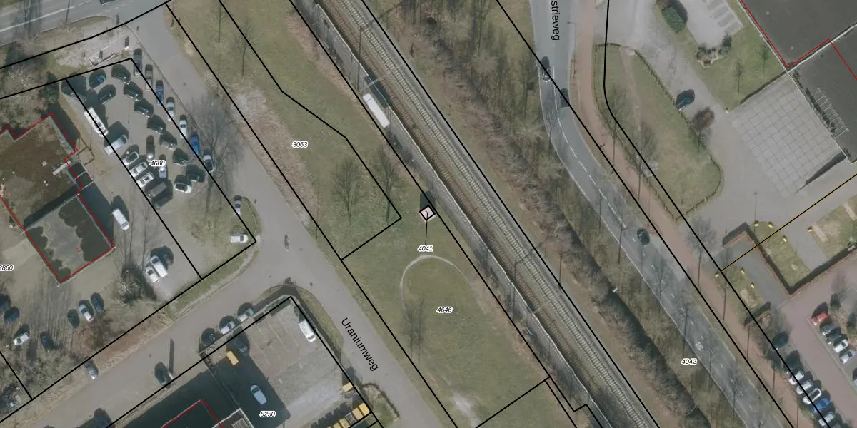 Het perceel waarop Uraniumweg 1 staat heeft een oppervlakte van 6 m². Dit is een klein perceel. De perceeloppervlakte wordt geregistreerd door het Kadaster. Gedetailleerde informatie over de maten van dit perceel kunt u vinden in het rapport Kadastrale kaart met maatvoering van Uraniumweg 1.