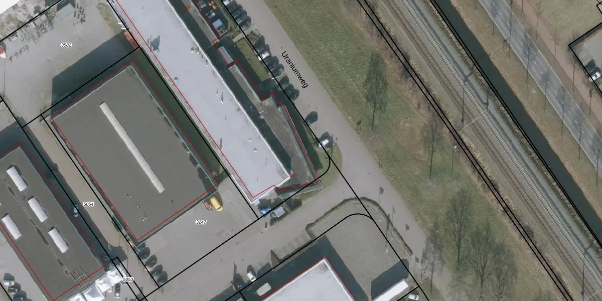 Het perceel waarop Uraniumweg 8-A staat heeft een oppervlakte van 4214 m². Dit is een zeer groot perceel. De perceeloppervlakte wordt geregistreerd door het Kadaster. Gedetailleerde informatie over de maten van dit perceel kunt u vinden in het rapport Kadastrale kaart met maatvoering van Uraniumweg 8-A.