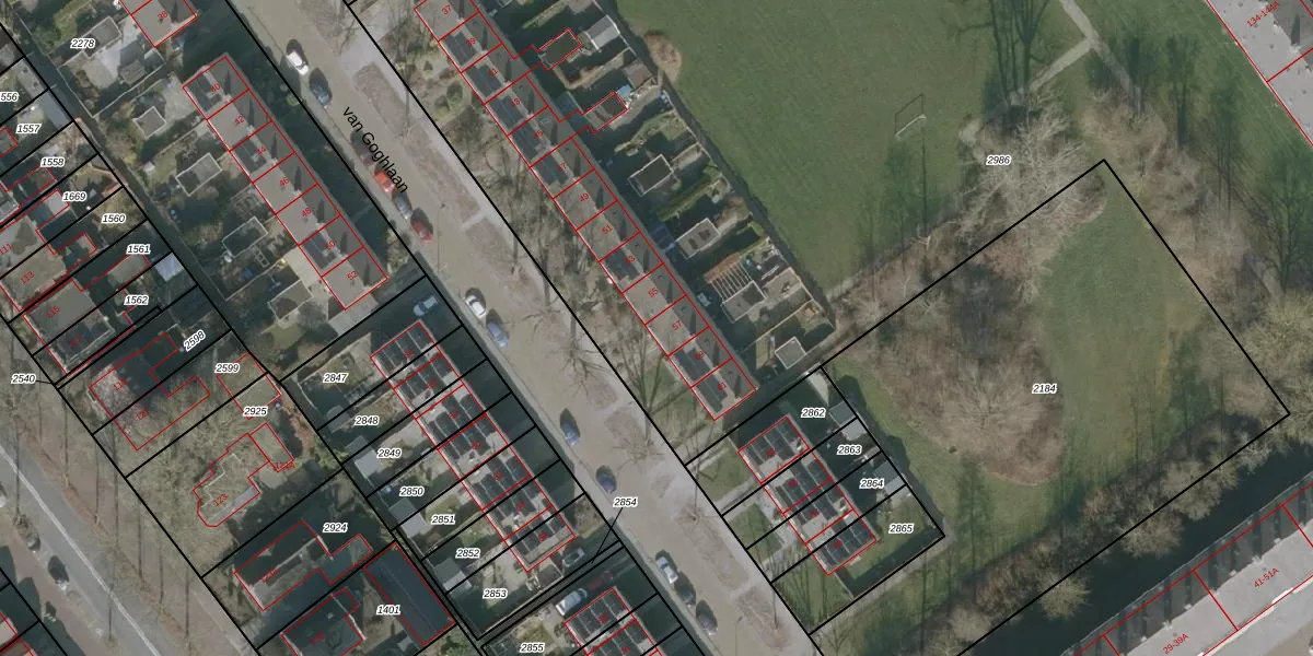 van Goghlaan 57 is gelegen op kadastraal perceel HRV01B2986. Deze kadastrale aanduiding is uniek en wordt gebruikt door het Kadaster om eigendomsrechten en andere zakelijke rechten vast te leggen. Het perceel maakt onderdeel uit van de kadastrale gemeente Heerenveen.
