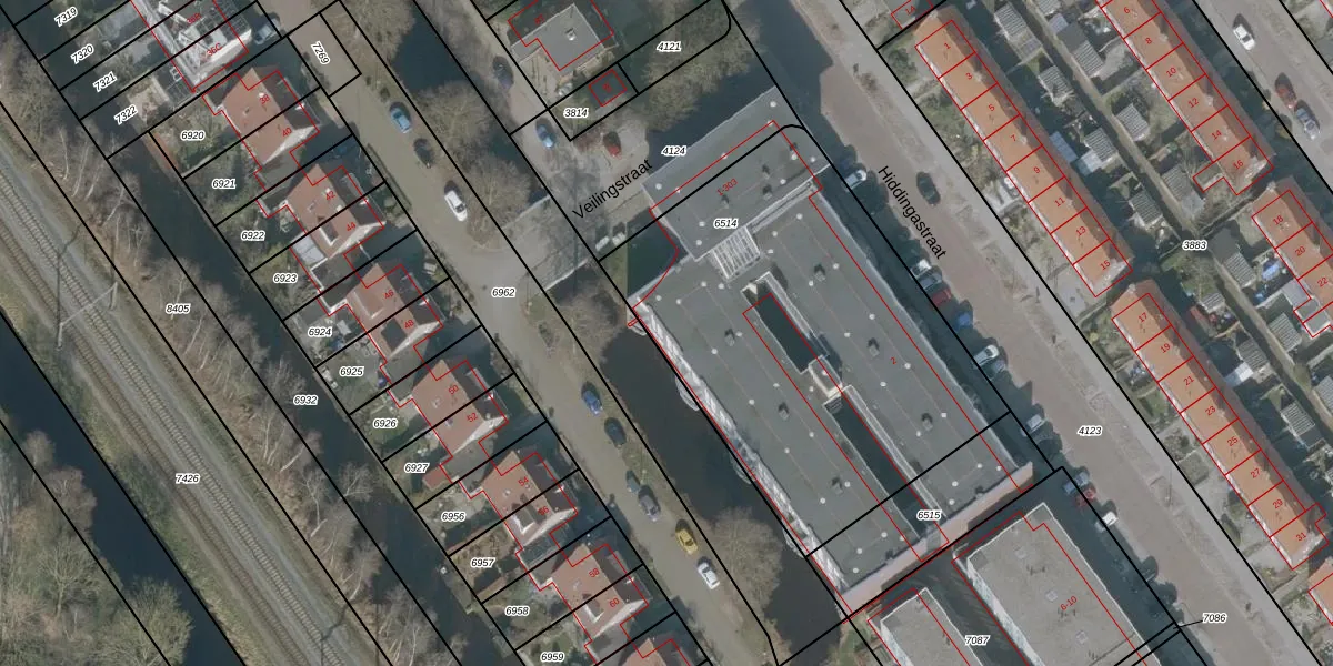 Veilingstraat 10 is gelegen op kadastraal perceel HRV01A6514. Deze kadastrale aanduiding is uniek en wordt gebruikt door het Kadaster om eigendomsrechten en andere zakelijke rechten vast te leggen. Het perceel maakt onderdeel uit van de kadastrale gemeente Heerenveen.