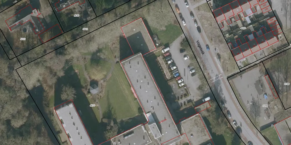 Het perceel waarop Vogelwijk 20-24 staat heeft een oppervlakte van 1,7 ha. Dit is een zeer groot perceel. De perceeloppervlakte wordt geregistreerd door het Kadaster. Gedetailleerde informatie over de maten van dit perceel kunt u vinden in het rapport Kadastrale kaart met maatvoering van Vogelwijk 20-24.