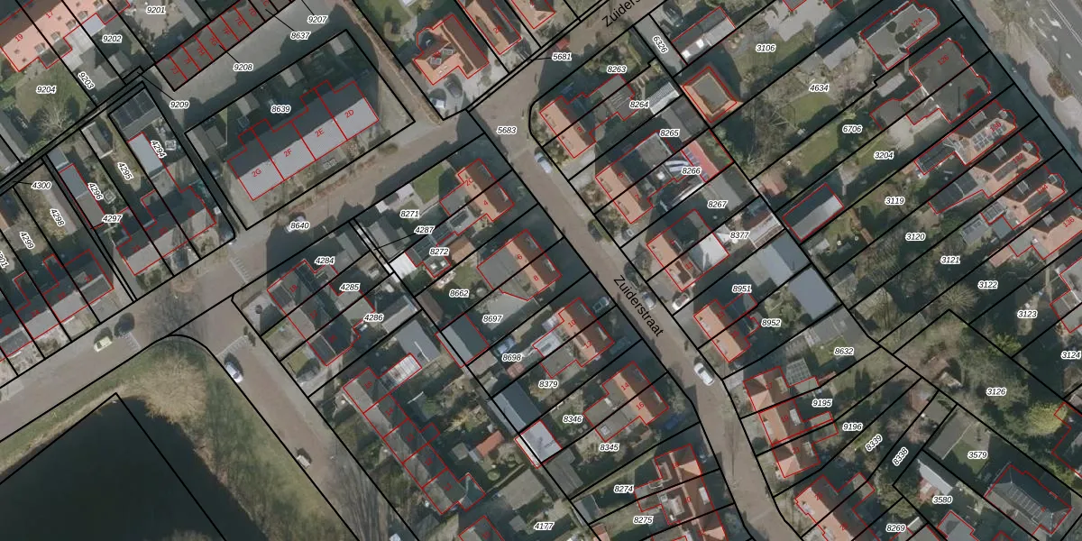 Zuiderstraat 8 is gelegen op kadastraal perceel HRV01A8697. Deze kadastrale aanduiding is uniek en wordt gebruikt door het Kadaster om eigendomsrechten en andere zakelijke rechten vast te leggen. Het perceel maakt onderdeel uit van de kadastrale gemeente Heerenveen.