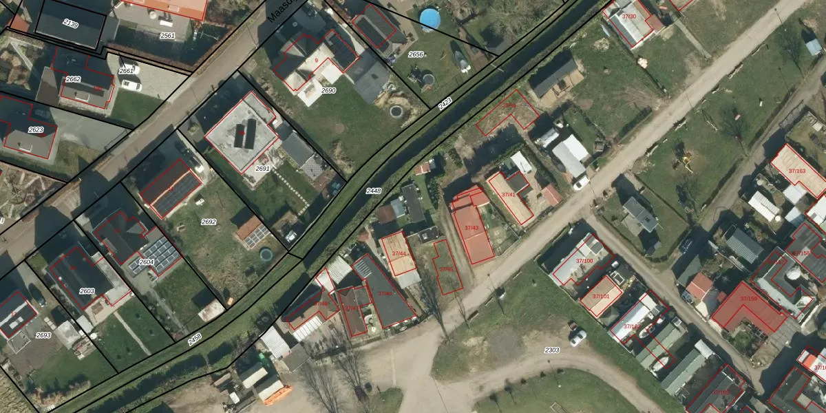 Hogestraat 37-38 is gelegen op kadastraal perceel HRW00C2303. Deze kadastrale aanduiding is uniek en wordt gebruikt door het Kadaster om eigendomsrechten en andere zakelijke rechten vast te leggen. Het perceel maakt onderdeel uit van de kadastrale gemeente Heerewaarden.