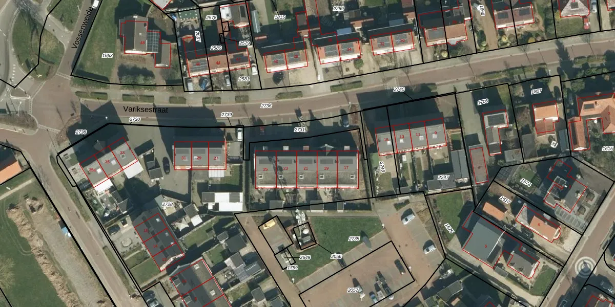 Het perceel waarop Variksestraat 21 staat heeft een oppervlakte van 4031 m². Dit is een zeer groot perceel. De perceeloppervlakte wordt geregistreerd door het Kadaster. Gedetailleerde informatie over de maten van dit perceel kunt u vinden in het rapport Kadastrale kaart met maatvoering van Variksestraat 21.