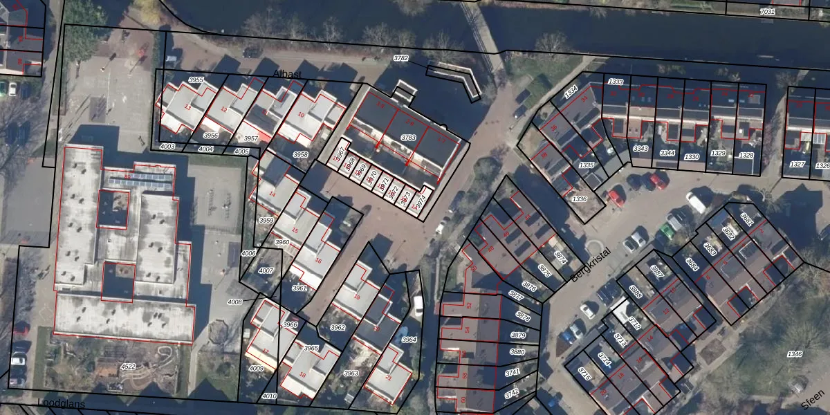 Het perceel waarop Albast 1-A staat heeft een oppervlakte van 24 m². Dit is een klein perceel. De perceeloppervlakte wordt geregistreerd door het Kadaster. Gedetailleerde informatie over de maten van dit perceel kunt u vinden in het rapport Kadastrale kaart met maatvoering van Albast 1-A.