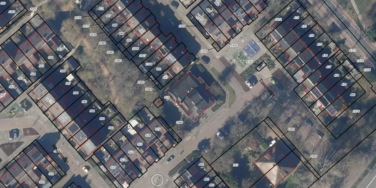 Gebruik de zoekbalk of klik op een perceel voor informatie over de adressen binnen dit perceel.
